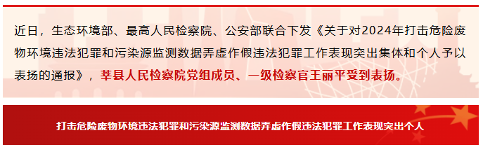 【聊檢播報】聊城一名干警受到生態(tài)環(huán)境部、最高人民檢察院、公安部聯(lián)合表揚