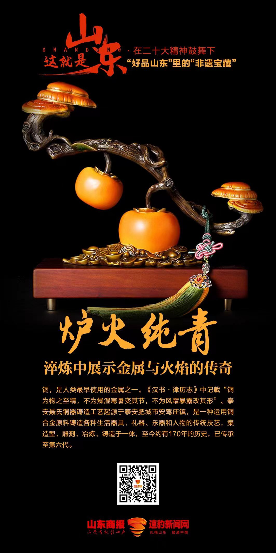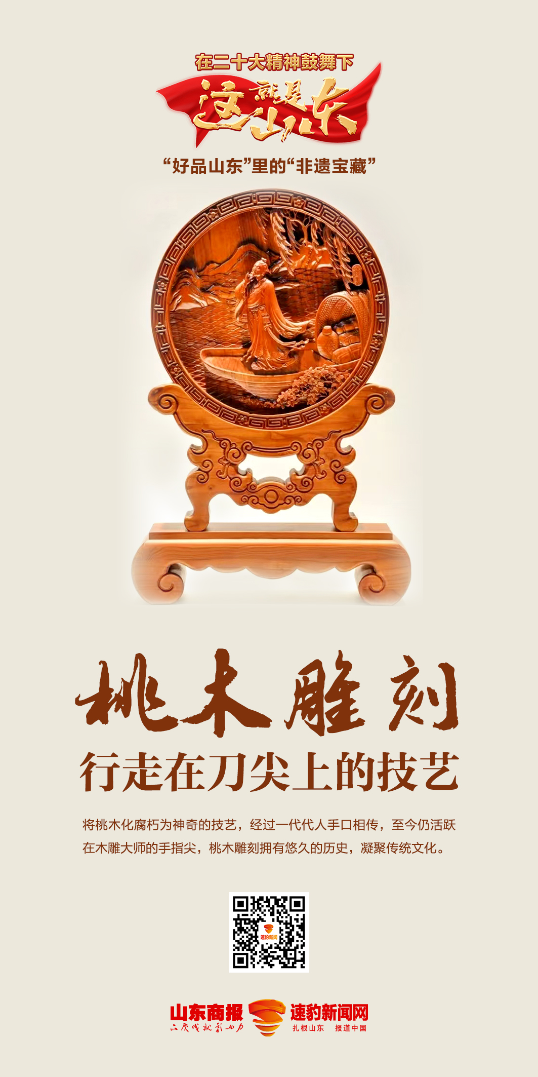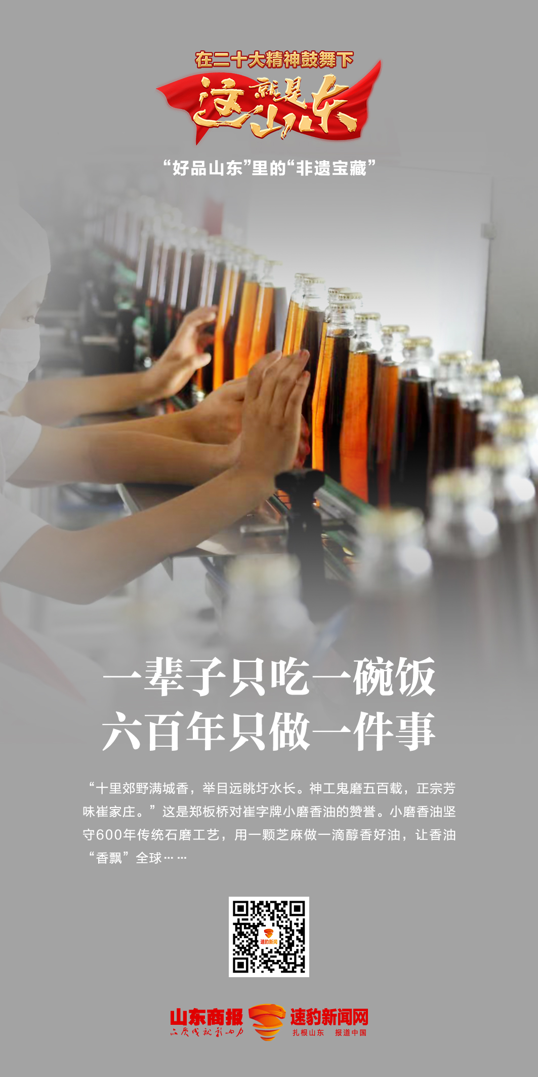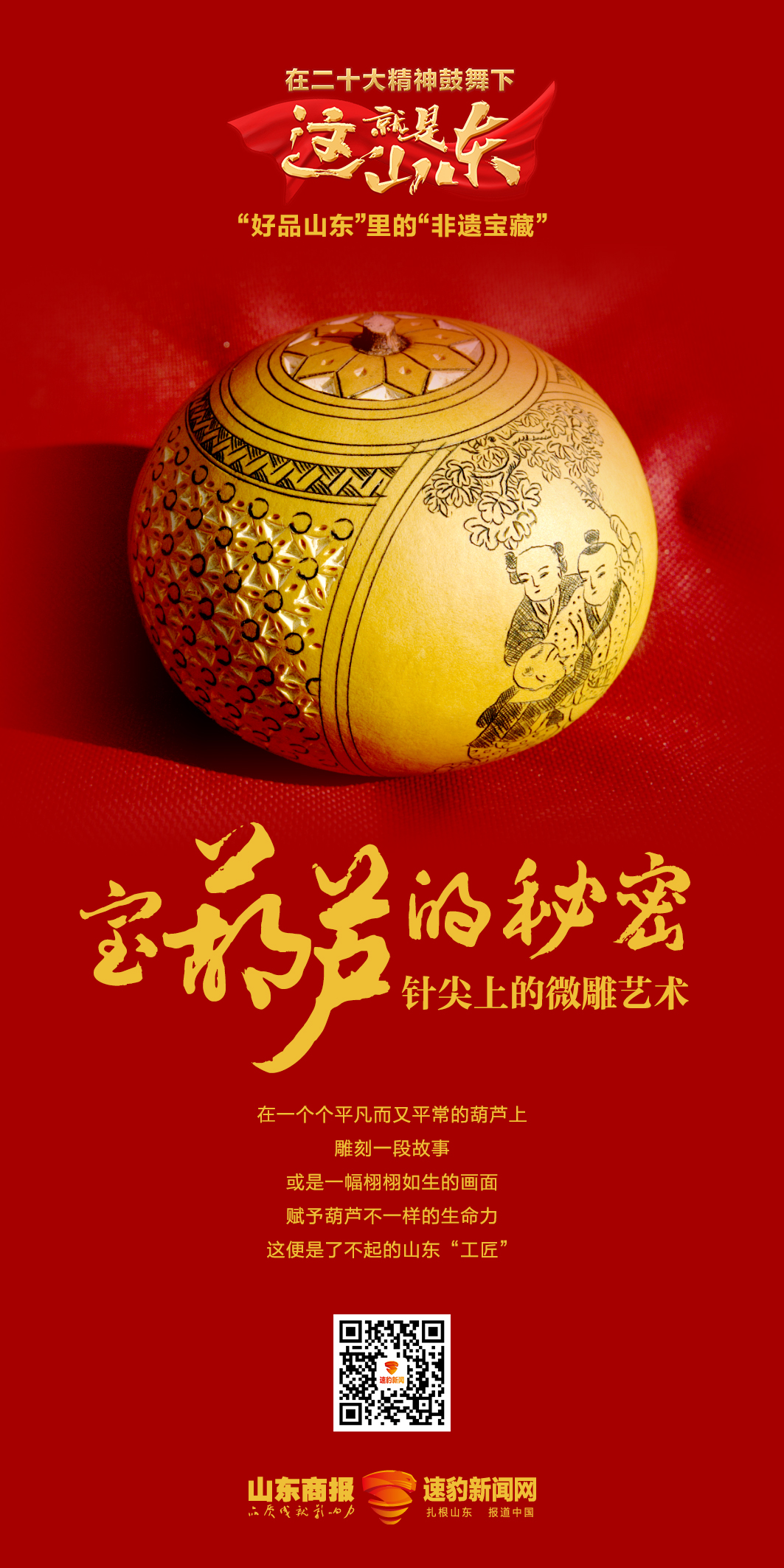 2021年2月,山東省政府印發(fā)《關(guān)于共建共享“好品山東”推動(dòng)高質(zhì)量發(fā)展若干措施》文件,全面謀劃和推進(jìn)“好品山東”品牌建設(shè),由品牌大省向品牌強(qiáng)省邁進(jìn)!昂闷飞綎|”是山東大力實(shí)施質(zhì)量強(qiáng)省和品牌戰(zhàn)略,打造區(qū)域公共品牌的一項(xiàng)創(chuàng)新工程。 今年,山東省公布首批“好品山東”品牌名單。在首批“好品山東”名單涵蓋的14類、223個(gè)品牌中,諸多非遺項(xiàng)目和相關(guān)企業(yè)光榮上榜,這里面不乏傳承幾百年甚至數(shù)千年的代表性非遺項(xiàng)目,吸引眾人目光。 為深入學(xué)習(xí)宣傳貫徹黨的二十大精神,依托文化大省山東深厚的非遺資源,由山東商報(bào)·速豹新聞網(wǎng)承辦的“好品山東”里的“非遺寶藏”網(wǎng)絡(luò)主題活動(dòng),聚焦省內(nèi)代表性非遺項(xiàng)目,與“好品山東”品牌建設(shè)相結(jié)合,展現(xiàn)我省非遺保護(hù)傳承的生動(dòng)實(shí)踐。 |